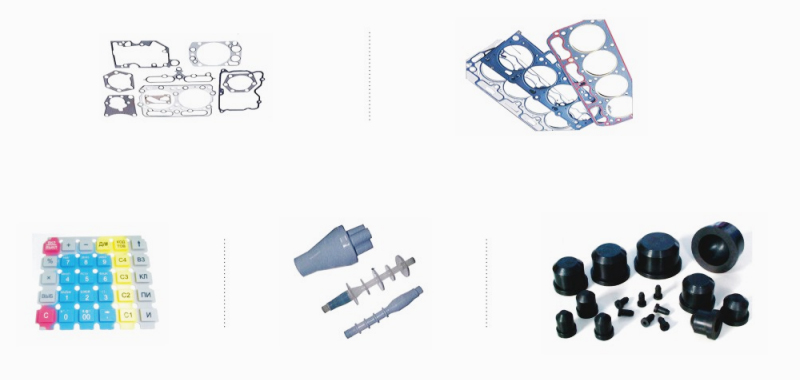 - O型圏、键盘、滚筒、医疗药品塞、防震用品、黑橡胶成品、生活用品、垫 片、汽车配件、导电用品、电子用品等外观要求美观、精密的制品。